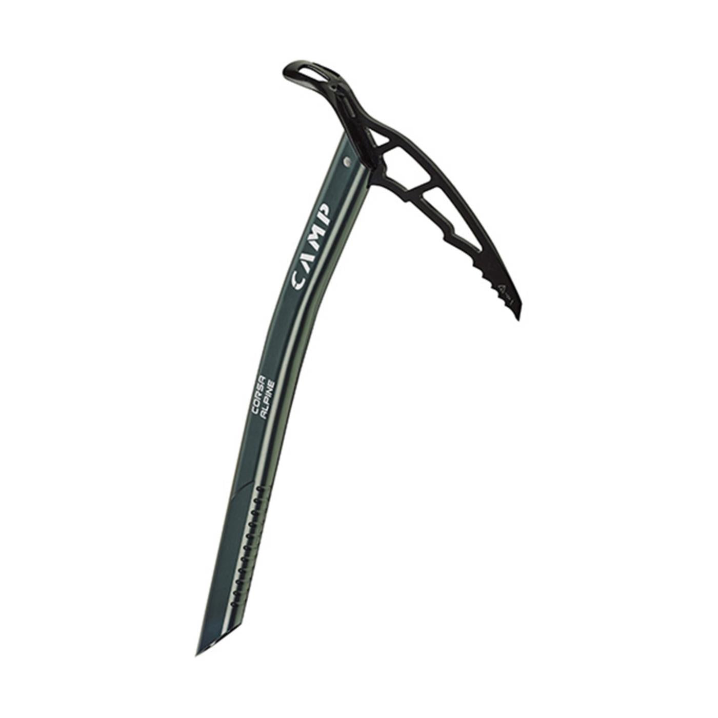 The Corsa Alpine combines the Corsa's superlight aluminum shaft with a steel head that ensures good performance even on technical terrain. The 55 cm version is the ultimate for mountaineering and ski mountaineering excursions that require both the performance of a steel pick and adze and the lightness of aluminum. The curved shaft optimizes striking without compromising the functionality of support and snow penetration. A special nylon insert prevents snow from penetrating and accumulating in the ice axe. The grip on the lower part of the shaft ensures a good hold. The slot at the rear of the head allows for the attachment of the Corsa Dragonne (available separately).