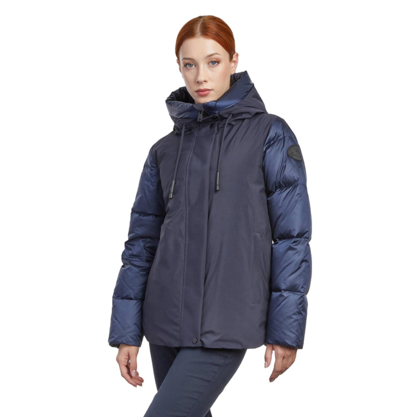Mildri si presenta con un apertura centrale con zip protetta da pattina con snaps metallici, comode tasche laterali con chiusura a zip e pratica tasca interna porta documenti, lo completa un avvolgente e caldo cappuccio regolabile.