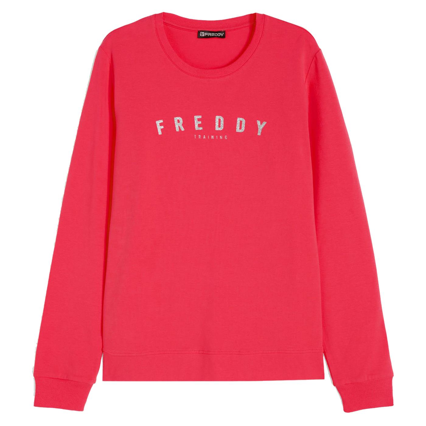 Una felpa da donna perfetta per le passeggiate in montagna o le serate estive grazie al tessuto jersey elasticizzato, leggero e comodo da indossare. La vestibilità è pensata per seguire i tuoi movimenti in modo naturale, grazie agli spacchetti sul fondo e ai polsini che mantengono in posizione il capo. La stampa FREDDY TRAINING in glitter argento posta al centro aggiunge un luminoso tocco di stile a questa felpa pratica e ricca di dettagli.