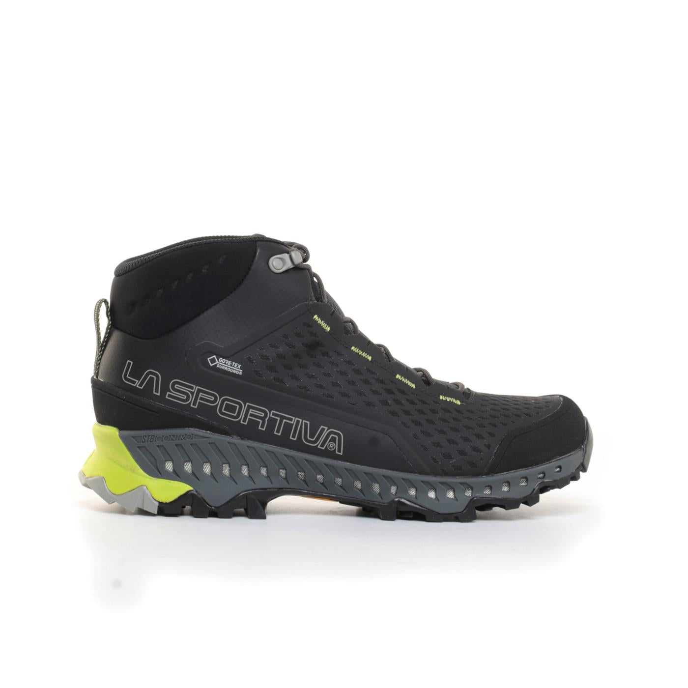 Scarponcino fast hiking di taglio mid per l’escursionismo veloce. Adotta soluzioni che sono parte del DNA mountain La Sportiva combinandole a tecnologie e concetti di derivazione Mountain Running per un prodotto versatile, impermeabile e super traspirante grazie alla nuova tecnologia GORE-TEX SURROUND: soluzione esclusiva che permette una traspirabilità totale grazie alla maggiore superficie d’areazione che comprende tomaia, sottopiede e l’intersuola in EVA e TPU forata lateralmente. I canali d’areazione visibili lungo il profilo dell’intersuola, sono protetti da una retina in Nylon mono-bava molto resistente per evitare l’entrata di sassolini ed impurità. La tomaia mid-cut è realizzata con struttura Nano-Cells 2.0 composta da cellette super traspiranti che lavorano in sinergia con la membrana GORE-TEX SURROUND per una traspirabilità aumentata senza precedenti. La parte inferiore della calzatura vede l’integrazione dello Stability control System, sistema di stabilizzazione anti-torsionale che integra i fori d’areazione della tecnologia GORE-TEX SURROUND. Il battistrada è in mescola Vibram XS Trek per un’ottima tenuta su terreni duri, morbidi e fangosi. Traspirabilità e comfort a 360 gradi.