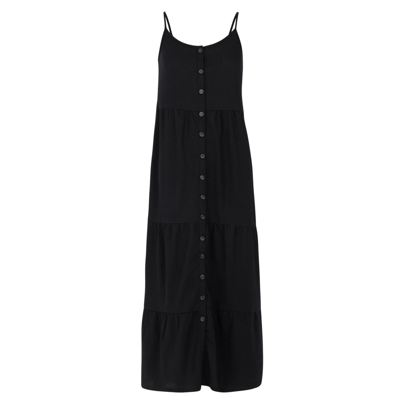 Questo bellissimo vestito estivo con spalline sottili ha una bellissima scollatura e bottoni sul davanti su tutta la lunghezza. Grazie al tessuto elasticizzato è super confortevole. Ha una lunghezza lunga e una vestibilità regolare. Il PRTCOCOA di Protest è l'abito perfetto per le giornate soleggiate e le afose serate estive.