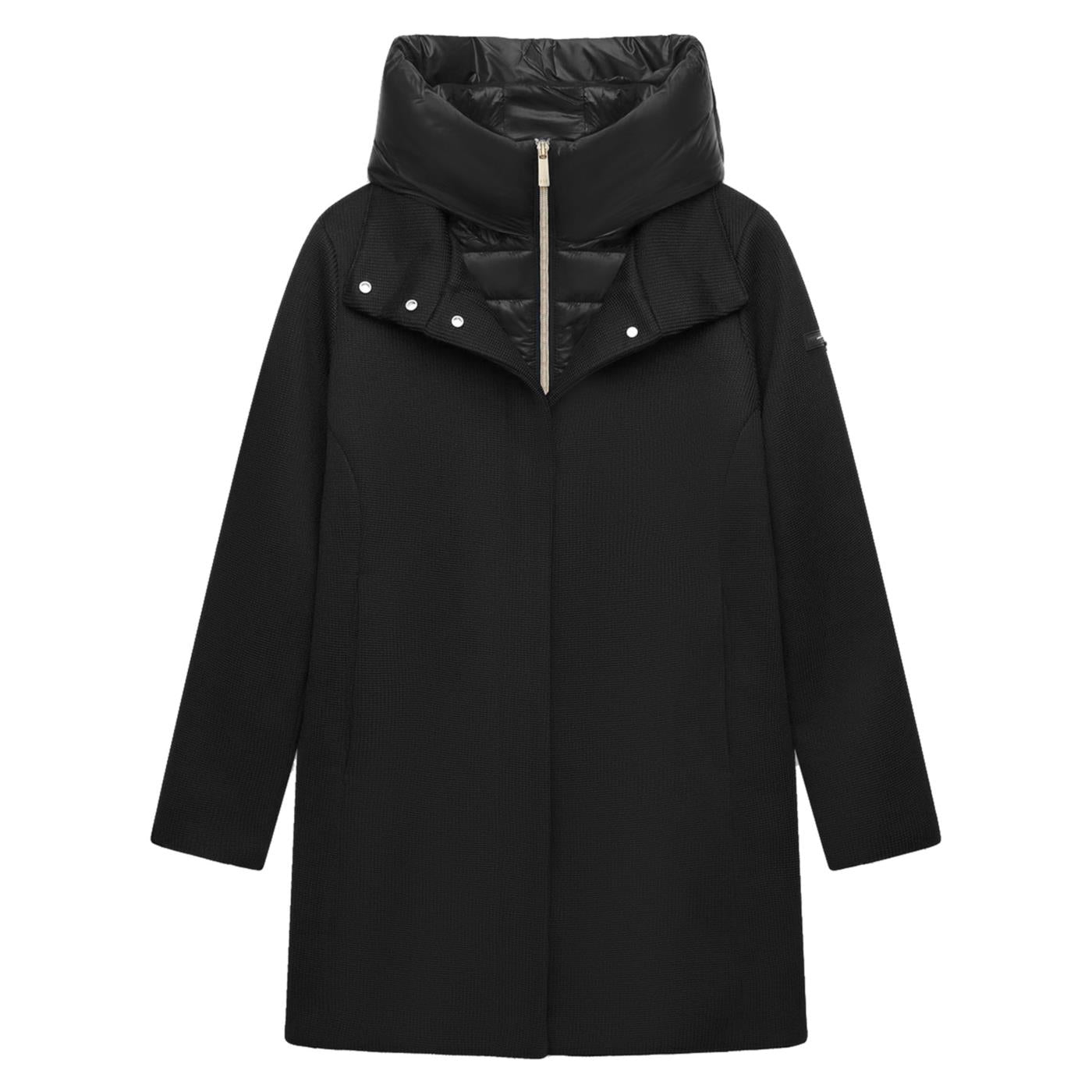 Jacket with detachable bib, crafted from a special engineered knit fabric. The iconic fabric is made from a next-generation mechanical stretch recycled polyester fiber, bonded to a special material called Foam, or polyurethane fiber, to ensure it adapts perfectly to the body's contours. Reinforced with a lightweight knit, it combines functionality, comfort, and durability. This fiber ensures the finished product maintains the fabric's perfect fit, without creating any imperfections.
