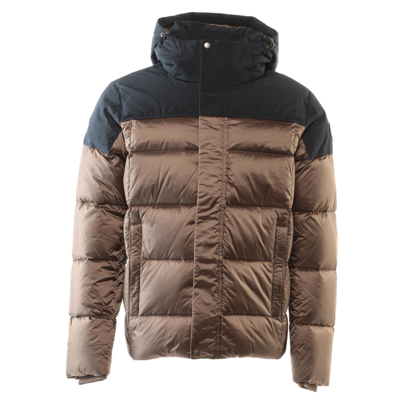 Giacca trapuntata imbottita in piumino che assicura un'ottima protezione termica. Questo capo e' unico in quanto progettato in doppio tessuto: il corpo in nylon mentre la parte superiore in materiale con trattamento water repellent. Si presenta con un cappuccio staccabile regolabile con coulisse, un'apertura centrale con zip, copertura con finta e snaps automatici, ampie tasche foderate in morbido fleece e chiuse con zip e filetti.