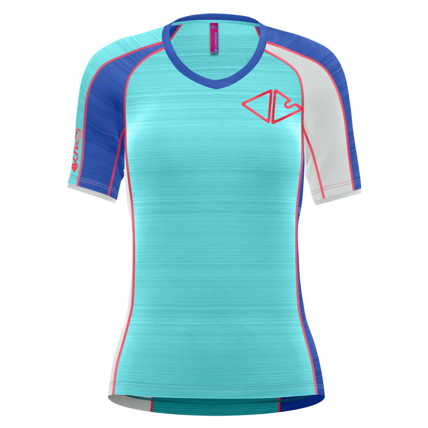 Ionic è il nome della collezione trekking donna di Crazy più riconosciuta e richiesta, la t-shirt ne rappresenta il concetto, sia per i tessuti e i trattamenti utilizzati sia per l'aspetto più grintoso e colorato. Il tessuto utilizzato è una fresca microfibra J2 unita ad inserti in poliestere con trattamento S-Café antiodore e anti raggi UV. Il collo è a V, le cuciture piatte i loghi rifrangenti.