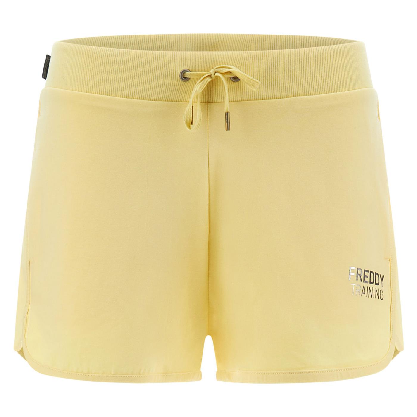 Shorts in jersey elasticizzato impreziositi dalla stampa FREDDY TRAINING lucida in colore oro chiaro posizionata sul fianco sinistro. Hanno vita in costina regolabile con coulisse, tasche interne, fondo stondato sui lati e vestibilità regular. Capo molto comodo e ideale per tutte le attività sportive dove il movimento è protagonista grazie al suo design corto e al tessuto elasticizzato che segue le linee del corpo senza costringerle. Con Freddy comfort e stile sono la cifra delle tue performance.